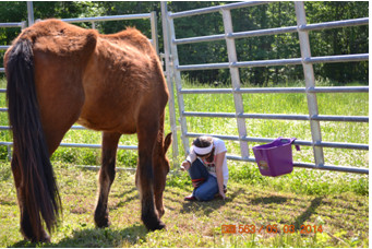 No slouch when it comes to the soft skill of having an entrepreneurial spirit, Bella obtained a corporate sponsor for the rescue. She knows an opportunity when she sees one and convinced her grandfather, Dino Rachiele, owner of Rachiele Sinks of Apopka, Florida, to contribute an annual corporate sponsorship of $1,200. Mr. Rachiele has visited the barn in Canton and provided his granddaughter with encouragement and moral support as he watched Buck’s ongoing improvement and recovery from the brink of death. He told MWRH that he is “glad to help in this worthy cause.”