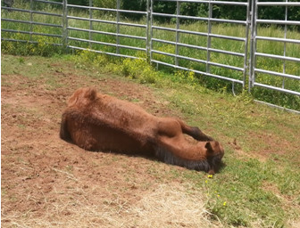 Buck was found in a farmer’s field in Rockmart, Georgia. Mr. Hesse and MWHR volunteer Jerry Bryant loaded a weak and scared Buck up into their horse trailer and brought him bac