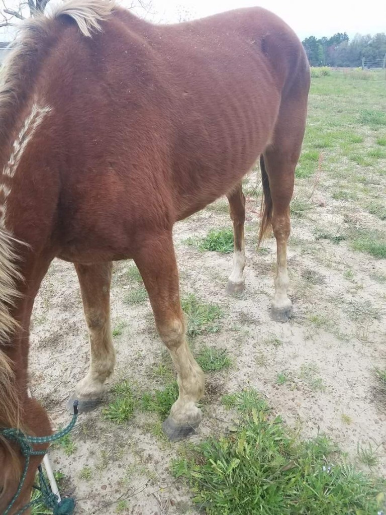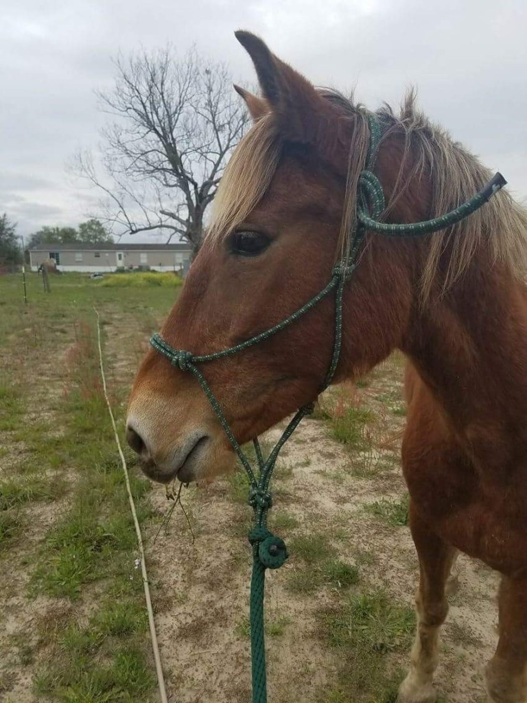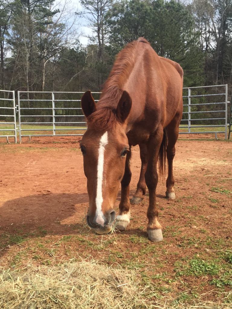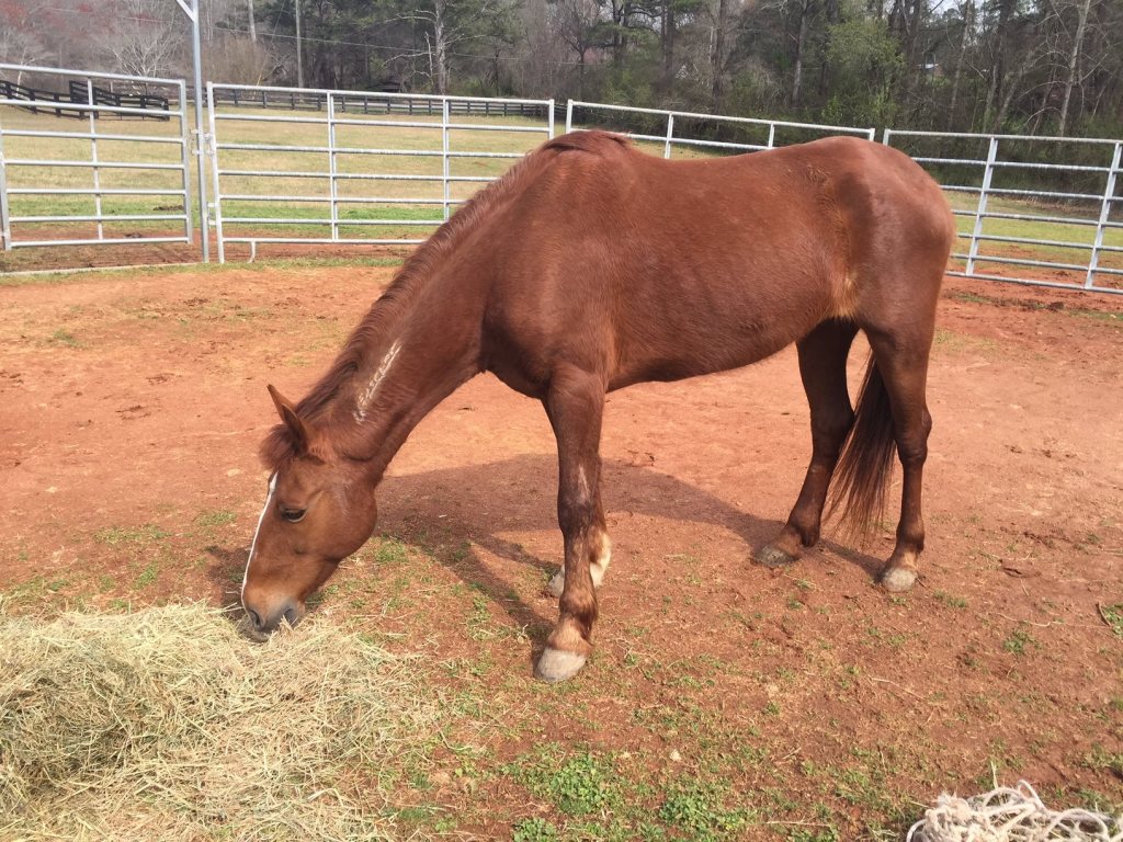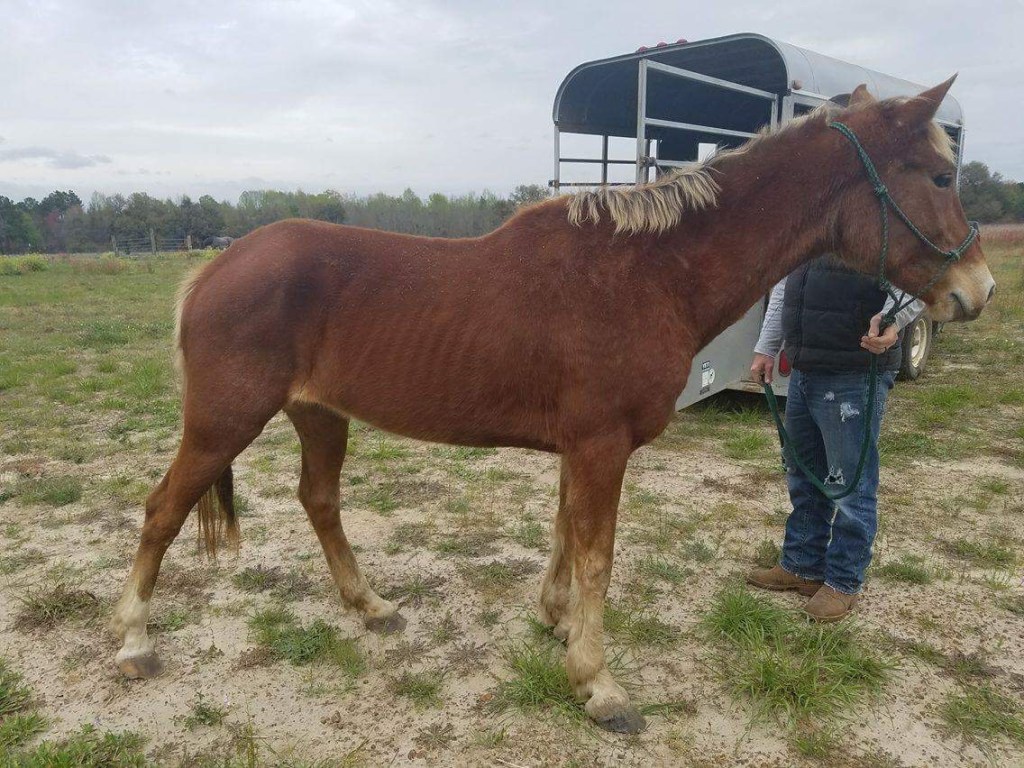 Ally, welcomed to the MWHR family in early March, is a mustang mare that was surrendered to us by her owner over the weekend. We don’t know much about her but believe she is in her early 20’s and has been ridden in the past. She’s a sweet girl but definitely needs some weight and TLC. She will be getting a visit from the vet and farrier this week. We are so thankful to Ashley and Justin who operate Hope Reins Rescue in Lyons, GA for going to pick her up on such short notice and care for her until she can be moved to the MWHR farm.